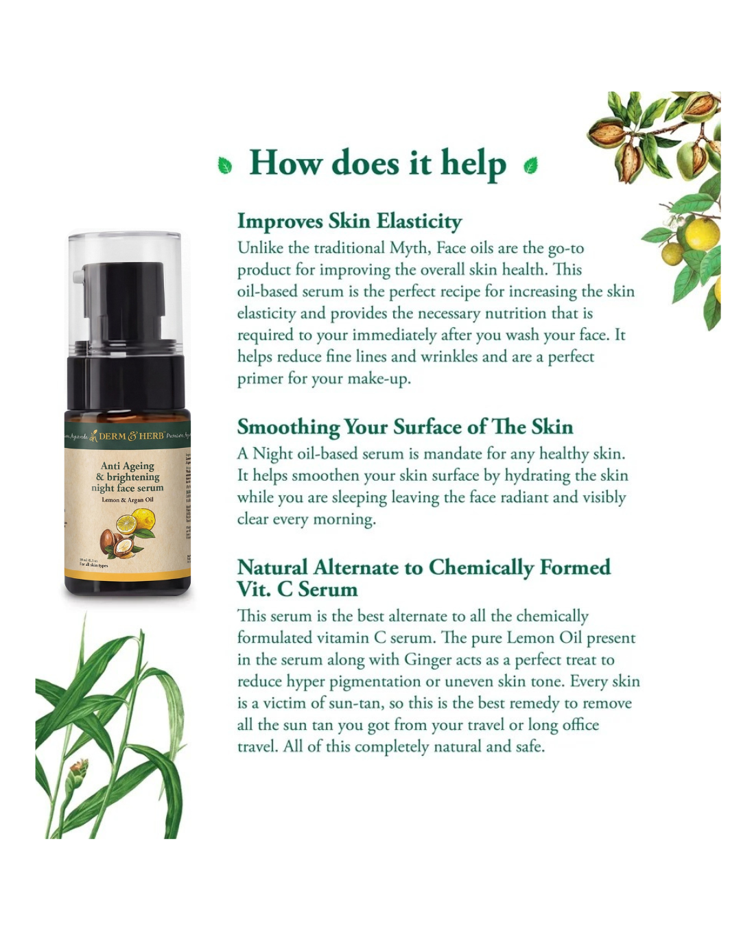 NATURAL ALTERNATE TO CHEMICALLY FORMED VIT. C SERUM: This serum is the best alternate to all the chemically formulated vitamin C serum. The pure Lemon Oil present in the serum along with Ginger acts as a perfect treat to reduce hyper pigmentation or uneven skin tone.